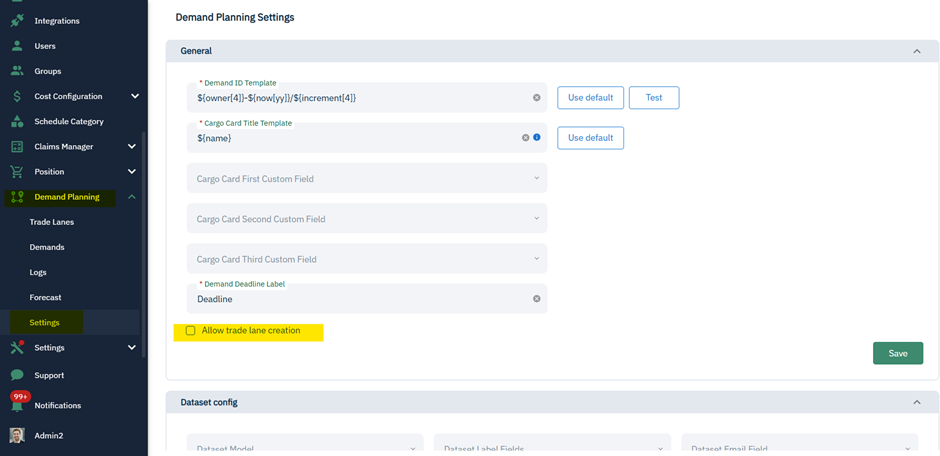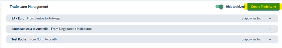 • Allow Trade Lane Creation (Disabled) – All users within the entity will no longer have the option to create new trade lanes.