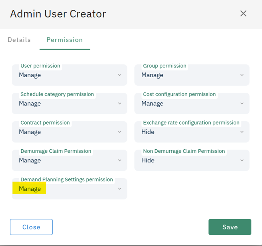 • Must have 'Manage' access under Demand Planning Settings Permission